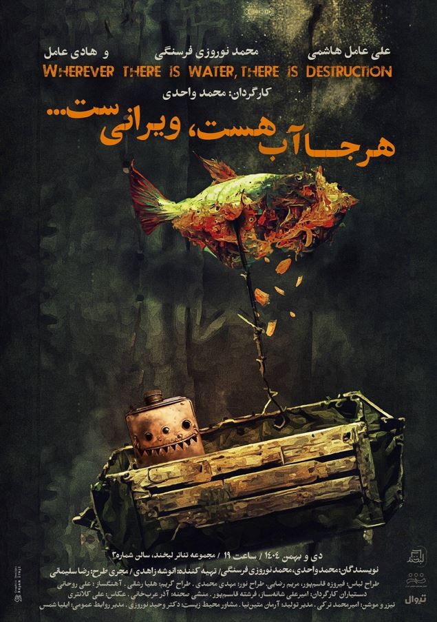 نمایش«هرجا آب هست ویرانیست» به کارگردانی محمد واحدی روی صحنه میرود. «هرجا آب هست ویرانیست» از اواسط دی در مجموعه تئاتر لبخندبه گزارش روابط عمومی پروژه، نمایش «هرجاآب هست ویرانیست» به کارگردانی محمد واحدی و تهیهکنندگی انوشه زاهدی روی صحنه میرود. متن نمایش توسط محمد واحدی و محمد نوروزی فرسنگی نوشته شده و این اثر نخستین تجربه کارگردانی محمد واحدی در تئاتر محسوب میشود. ضمنا زاهدی پس از چند سال دوری از تئاتر با این اثر فعالیت خود را به عنوان تهیه کننده دوباره آغاز میکند.
